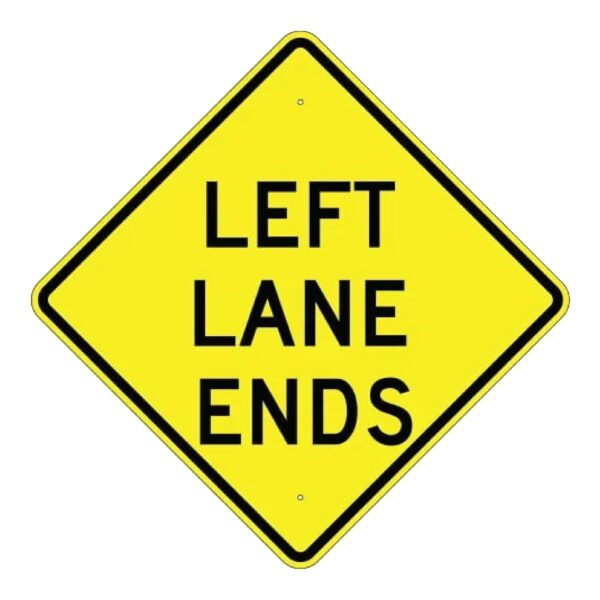 Lane Ends Left Sign – Yellow