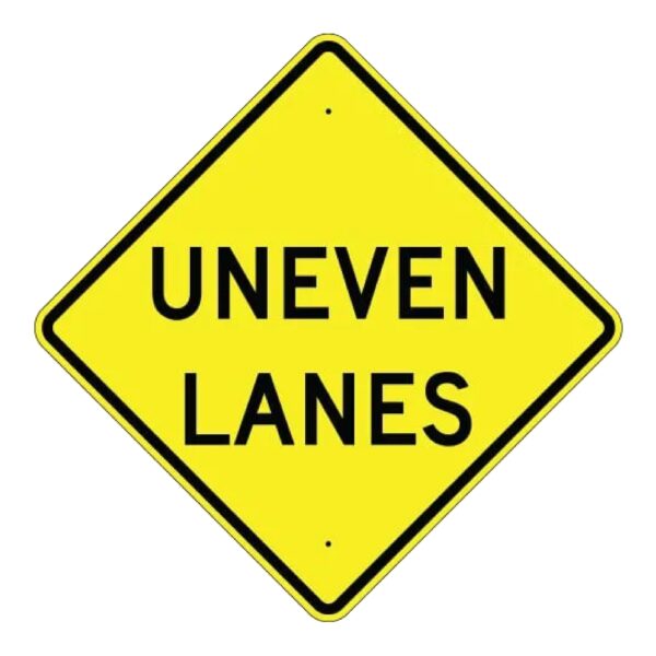 Uneven Lanes Sign – Yellow