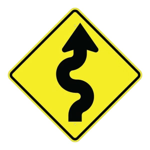 Curves Ahead Left Sign – Yellow