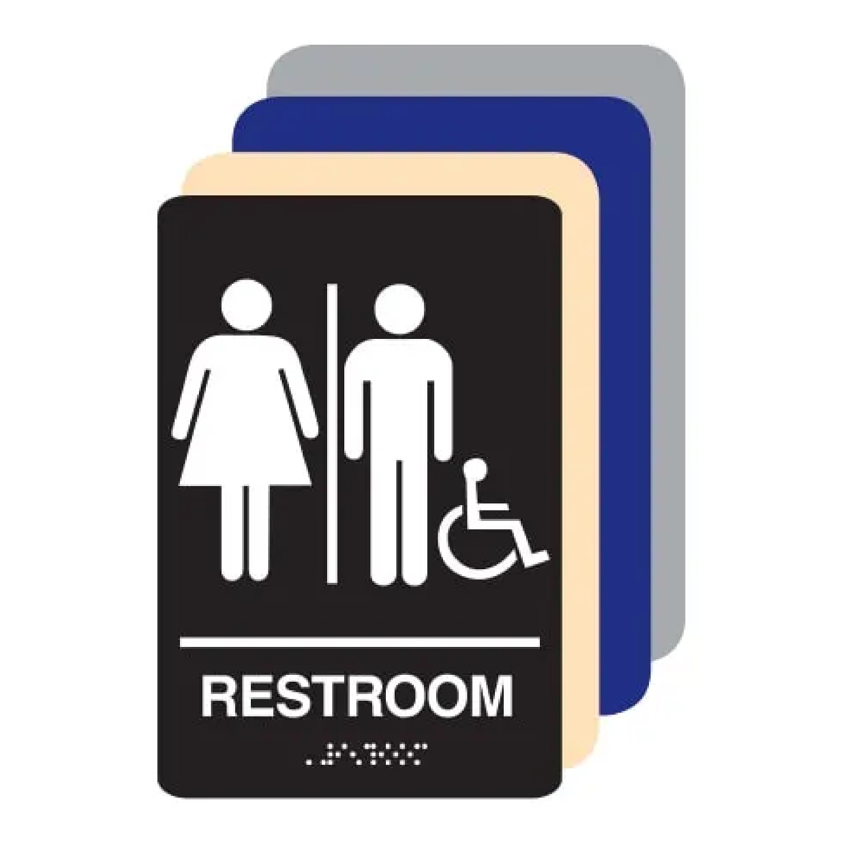 • 9” x 6” ADA accessible restroom sign